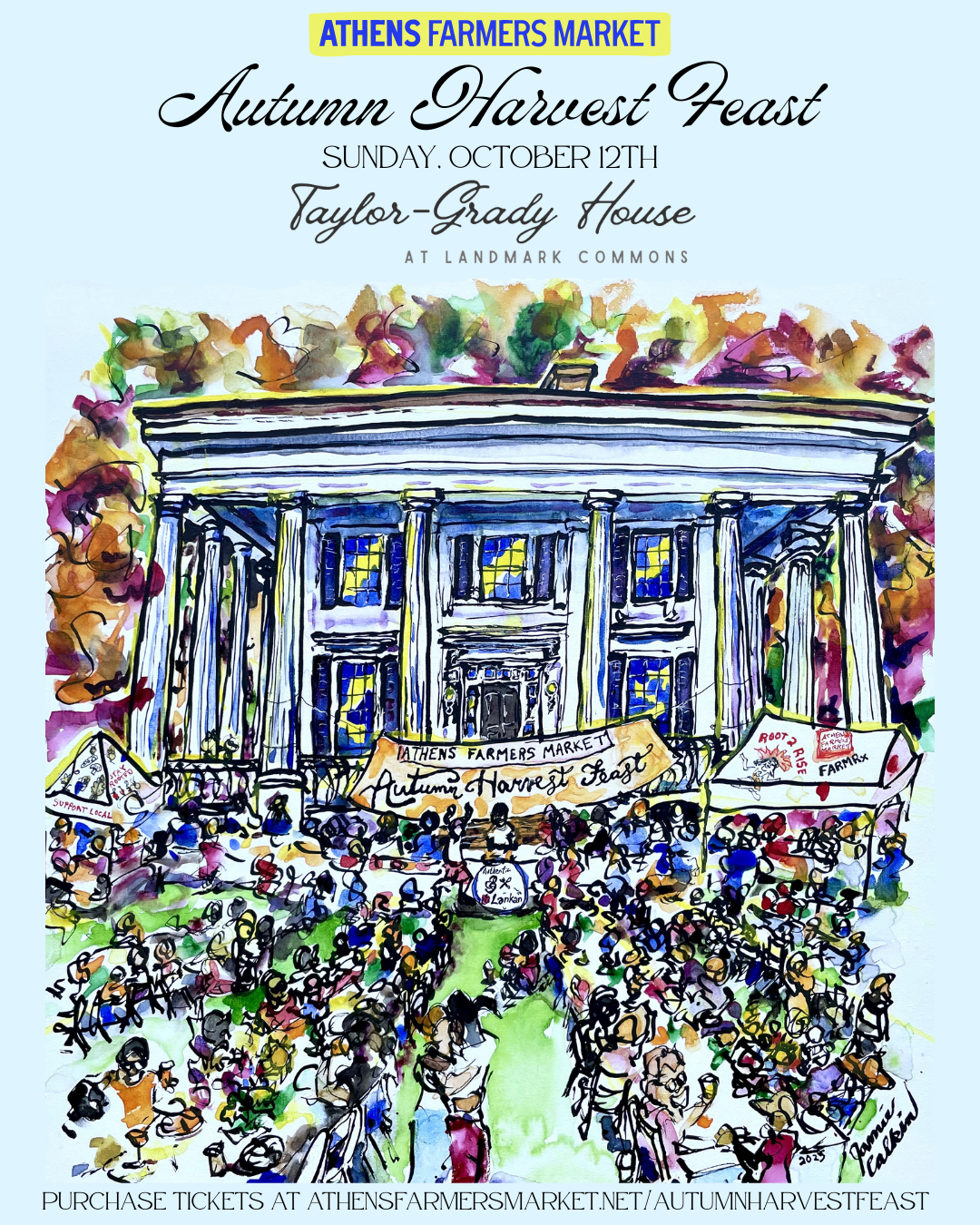 Join us Oct 12 for the Autumn Harvest Feast—an elegant farm-to-table dinner & fundraiser celebrating 18 seasons of Athens Farmers Market.